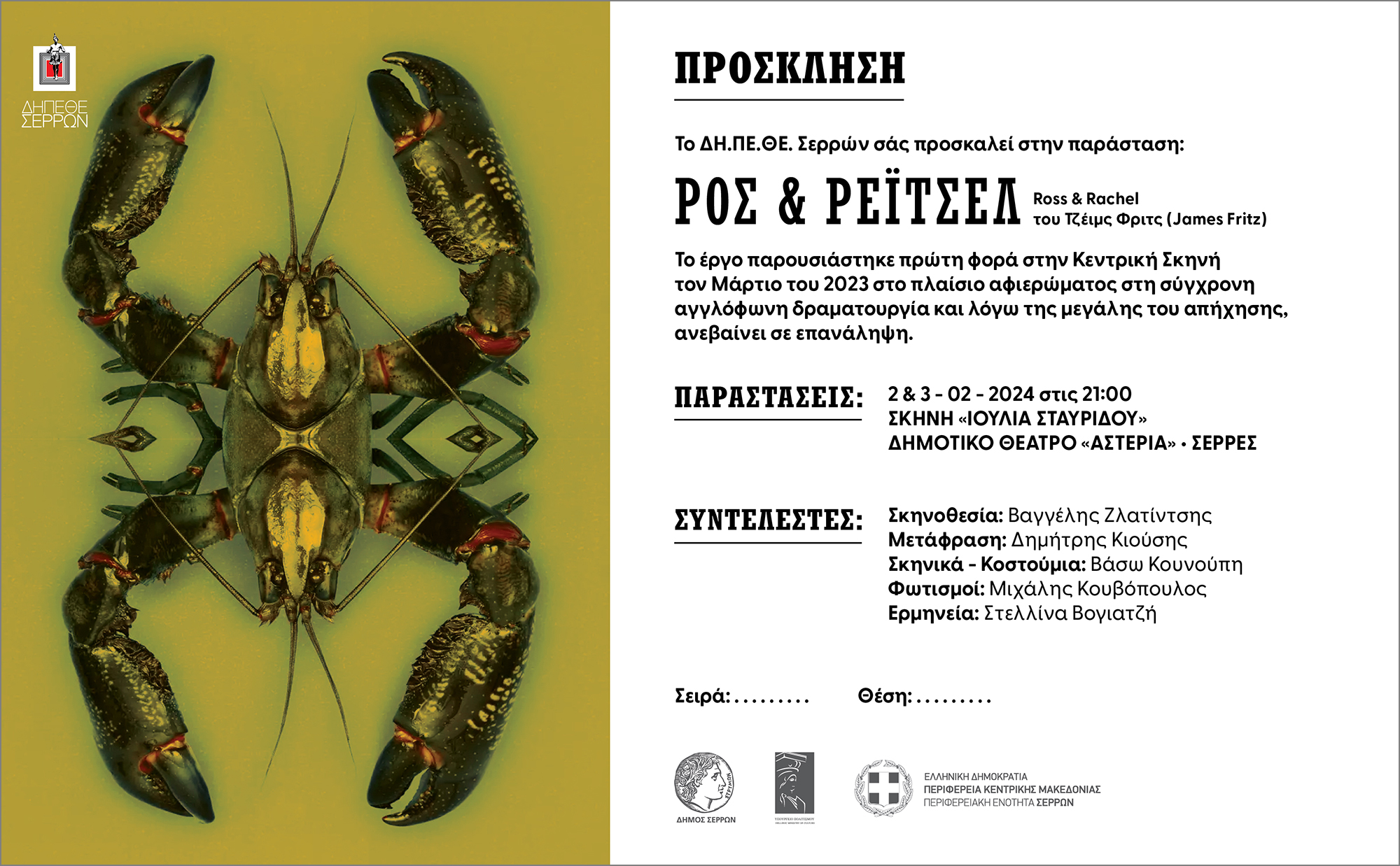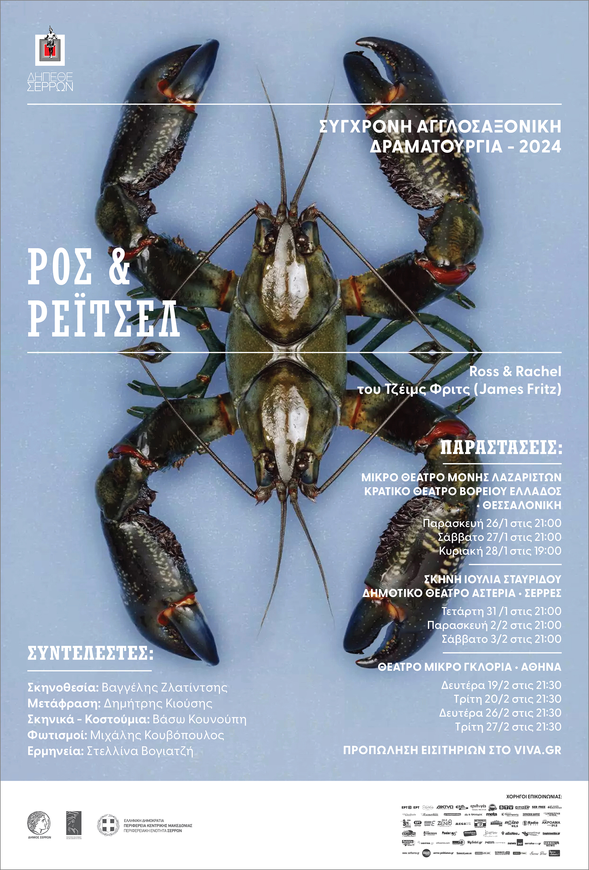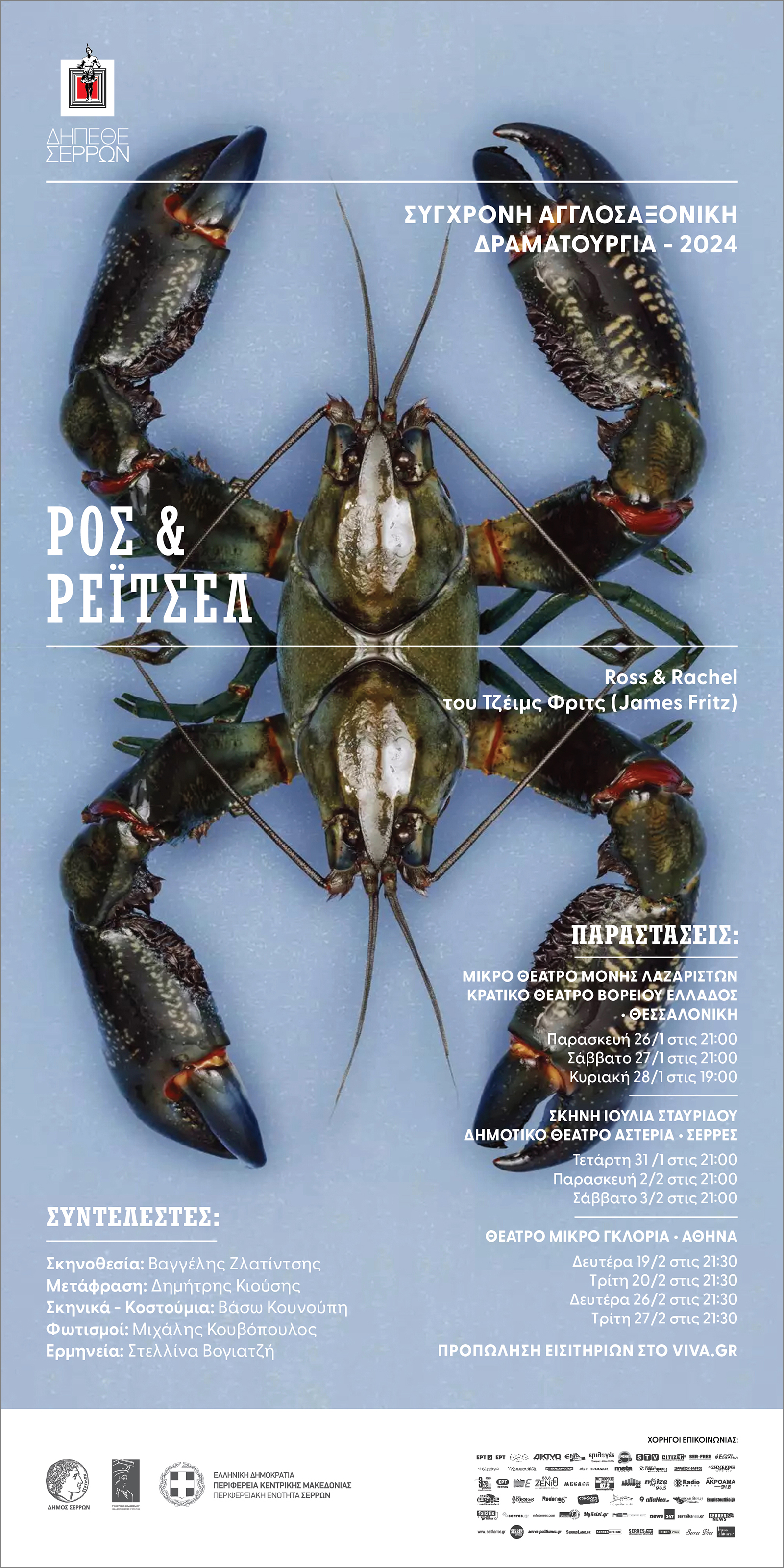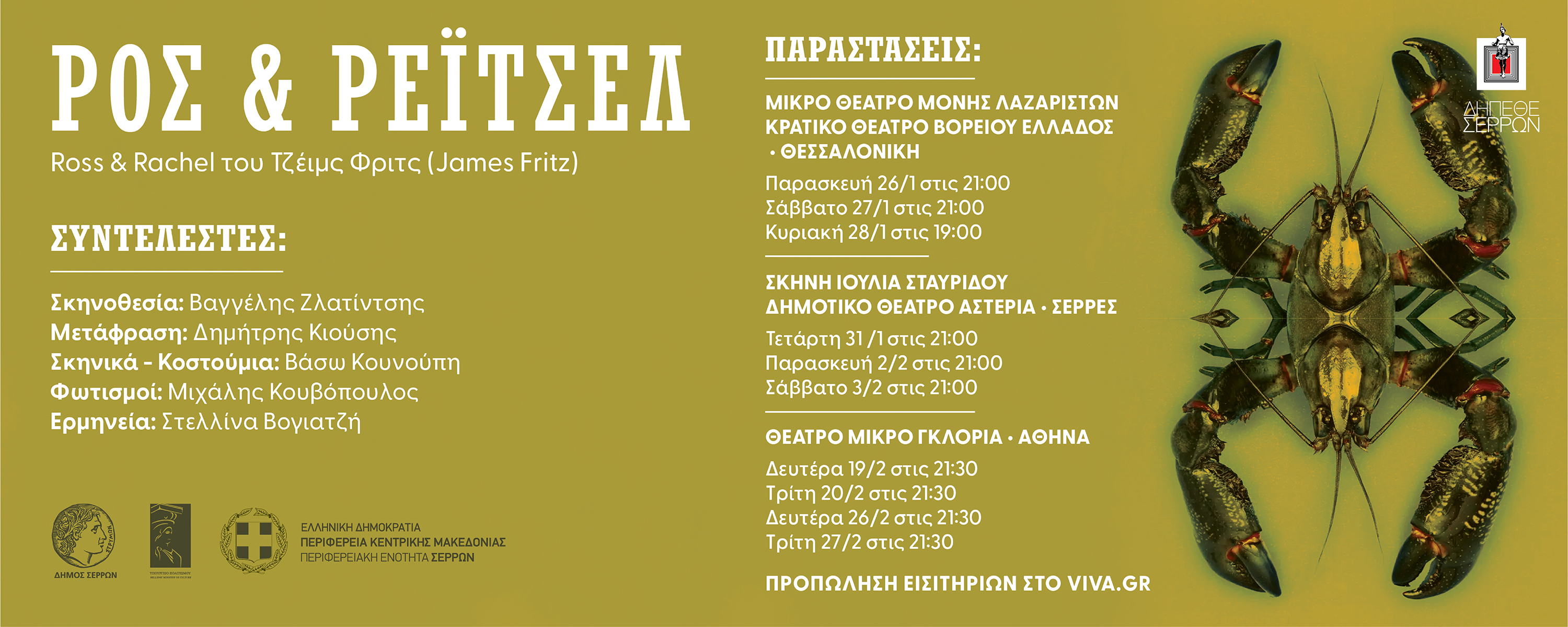 Δημιουργικό αφίσας για 3 θεατρικά έργα. "Άγγελε μου" (Henry Taylor), "Ρος και Ρέιτσελ" (James Fritz), "Χιονονιφάδα" (Mike Bartlett). Σκηνοθεσία: Βαγγέλης Ζλατίντσης. Λόγω της μεγάλης του απήχησης, το έργο "Ρος και Ρέιτσελ" ανέβηκε σε επανάληψη για μετρημένες παραστάσεις σε επιλεγμένους θεατρικούς χώρους.