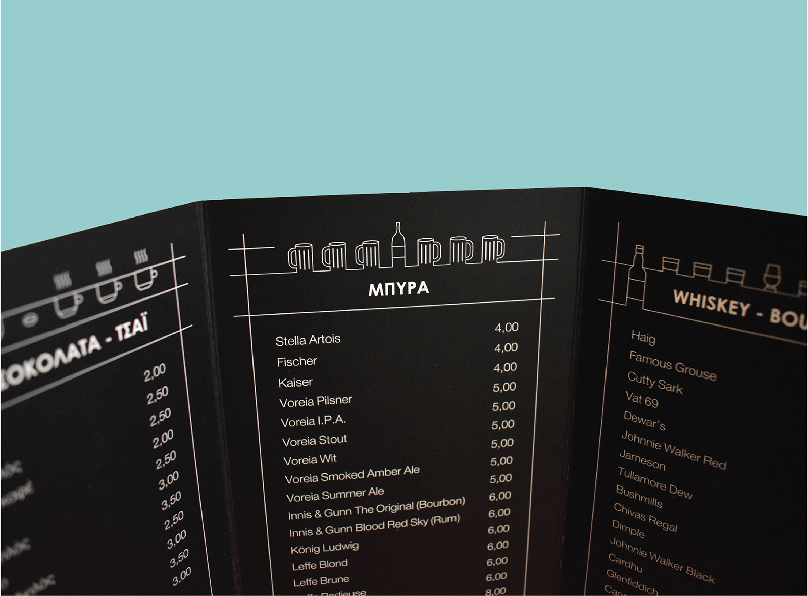Σχεδιασμός τιμοκατάλογου για το bar - cafe, Merlin.