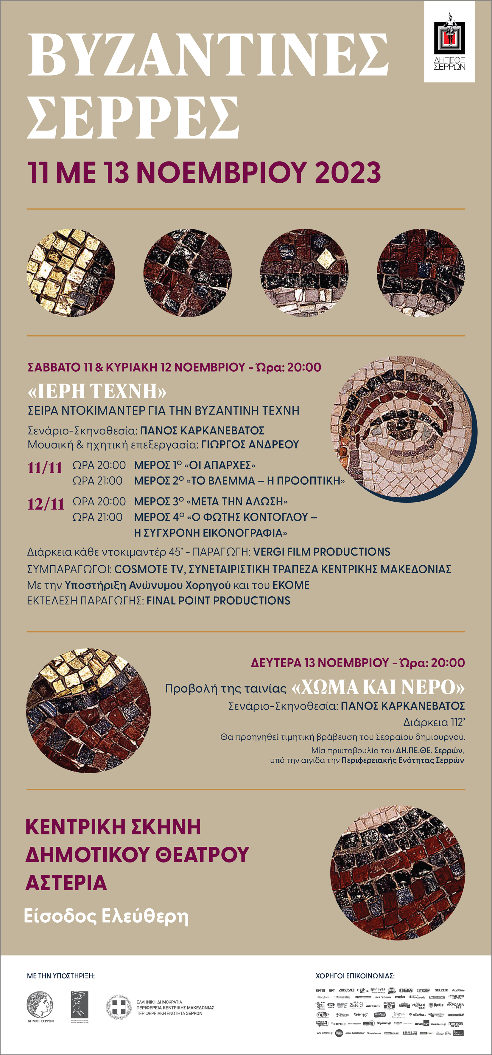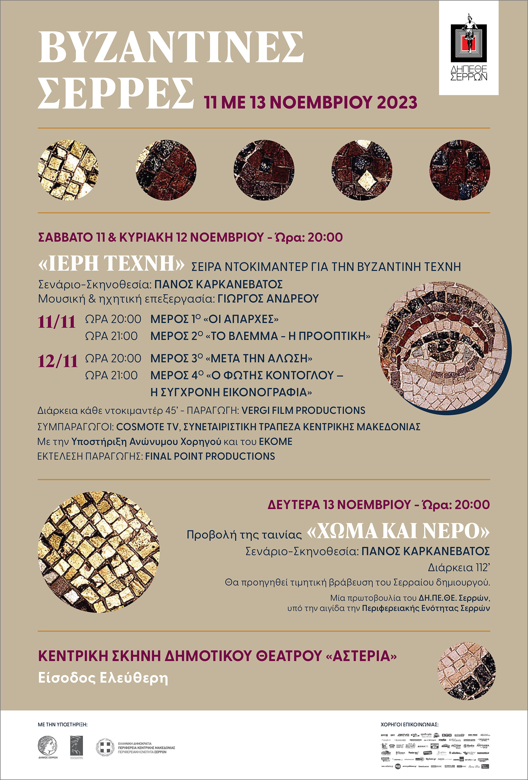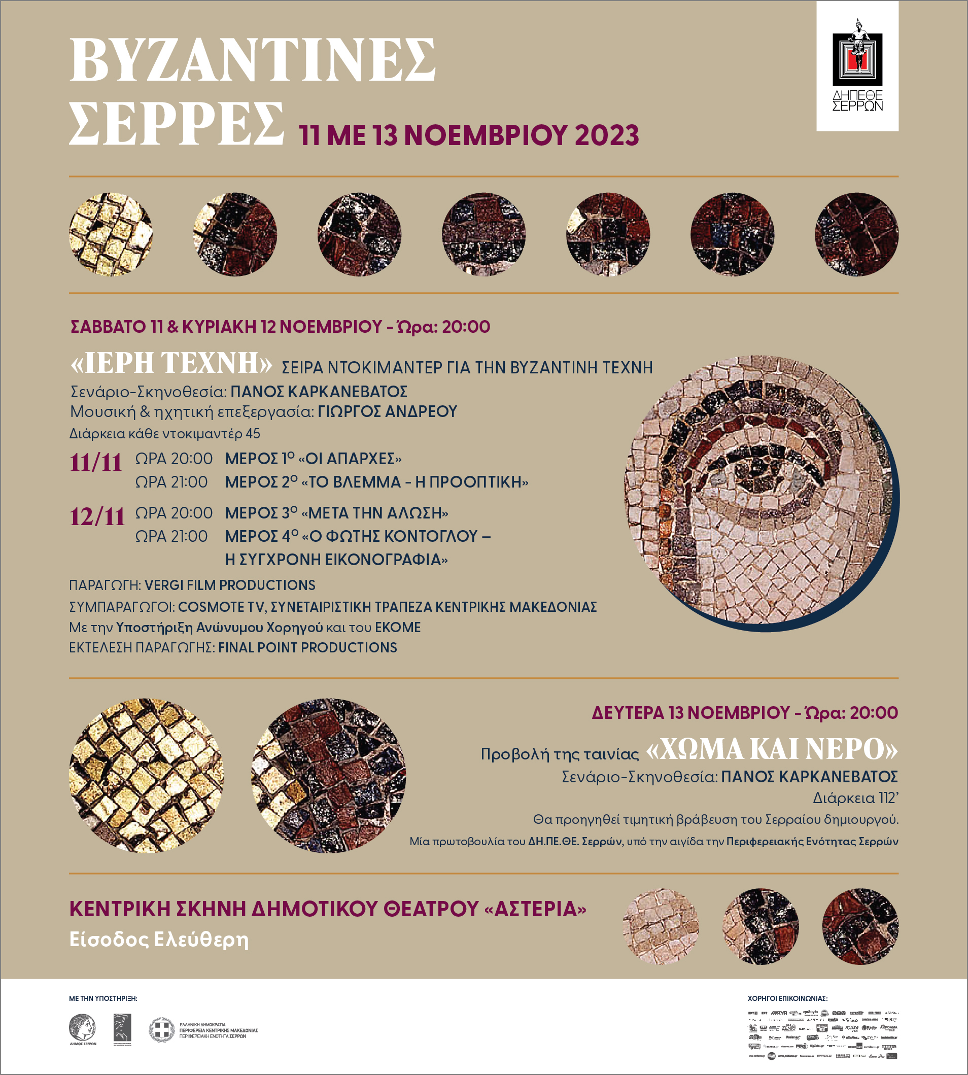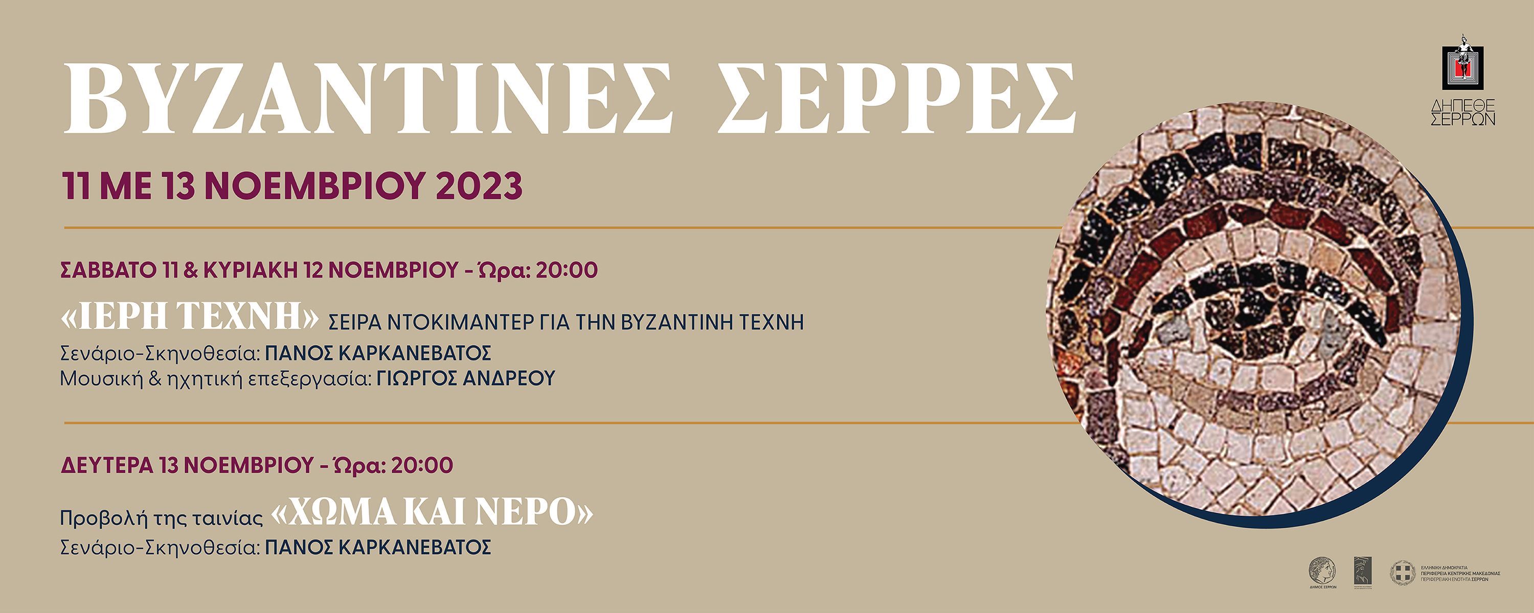 Δημιουργικό αφίσας εκδηλώσεων με τίτλο "Βυζαντινές Σέρρες" και με στόχο την συνομιλία της πόλης των Σερρών με το Βυζαντινό παρελθόντος της